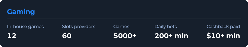 O BetFury começou sua trajetória como plataforma de i-Gaming com 5 jogos próprios. Agora, temos 12 jogos desenvolvidos internamente e mais de 60 fornecedores de jogos com mais de 5.000 jogos! Recursos úteis que foram desenvolvidos: Jackpots, Modo Automático, Jogo Rápido, Estatísticas ao Vivo, Cofre, Teclas de Atalho, Cashback, Tarefas Diárias, Modo Demo. Tudo para tornar sua experiência no site confortável e divertida.