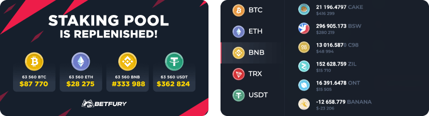 Durante a existência da plataforma BetFury, mais de US$ 50 milhões em pagamentos de Staking foram distribuídos! Não passa um único dia sem pagamentos para os detentores do token BFG!
