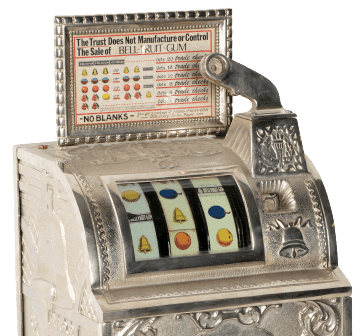 Mas, em 1907, a Industry Novelty Company descobriu como contornar essas leis sobre dinheiro. Eles transformaram suas máquinas caça-níqueis em distribuidores de chicletes! A principal mudança foi a substituição dos números das cartas de diferentes naipes por símbolos de frutas. Essa foi a primeira menção aos rolos de frutas nas máquinas caça-níqueis.