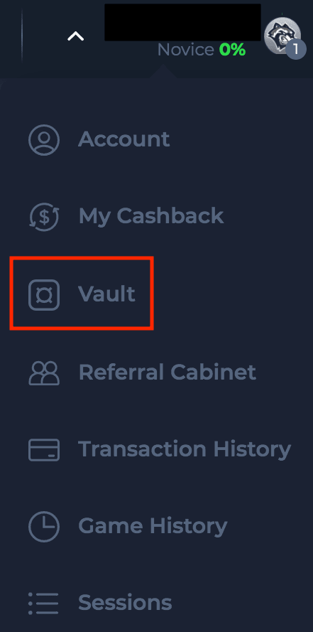 - Clique no botão “Retirar do Vault” e aguarde alguns instantes até que seus fundos sejam debitados do Vault para o saldo do jogo.
