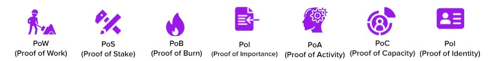 Qualquer pessoa familiarizada com algoritmos de consenso sabe que existem vários métodos seguros e verificáveis de extensão da blockchain. Na imagem abaixo, você pode ver a maioria dos algoritmos de consenso.